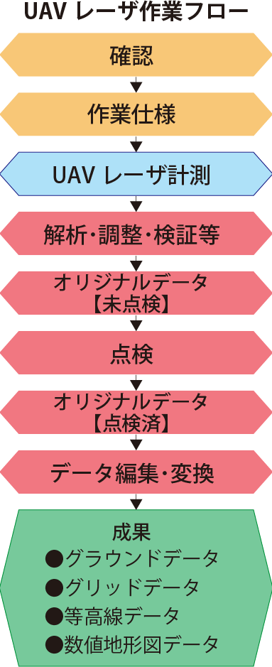 UAV を用いた写真測量及びレーザー測量の利点は取得出来る点群データの緻密さと計測のスピード感、立ち入ることが困難な危険箇所のデータ取得が可能であり、公共工事他、幅広い分野で活用されております。